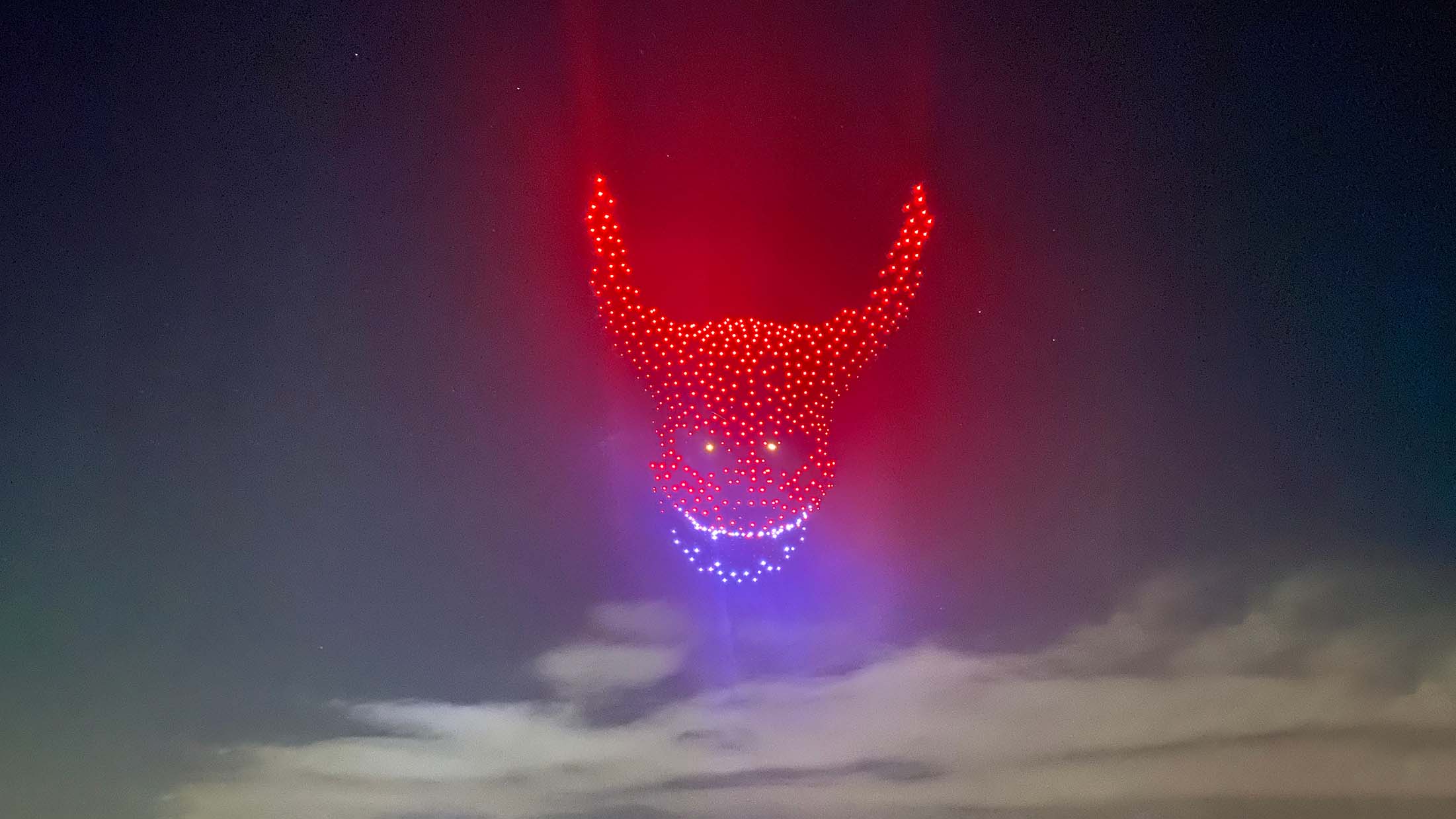 Am Abend des 4. September 2025 verwandelte sich der Himmel in eine leuchtende Bühne. Die Show begann mit dem markanten Schriftzug „BOKKENRIJDERS“ und führte anschließend durch symbolische Szenen aus dem Musical – vom heraufziehenden Unheil über die Erscheinung des Teufels bis hin zu den drei geheimnisvollen Reitern.